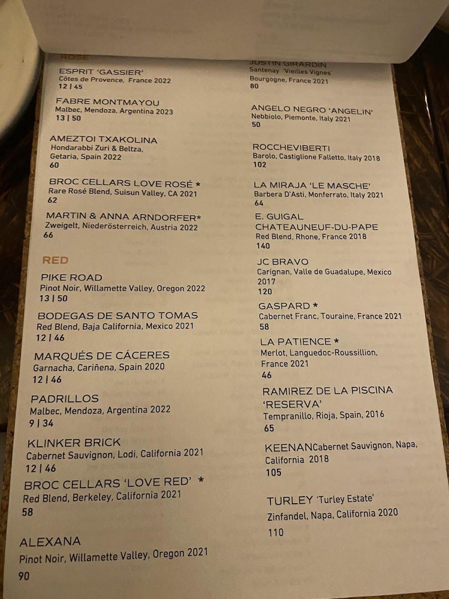 - Desserts: The dessert selection includes buttermilk panna cotta with passion fruit syrup, dark chocolate ganache with dulce de leche and candied orange, and rosemary & orange olive oil cake topped with honey whipped cream and pistachios.