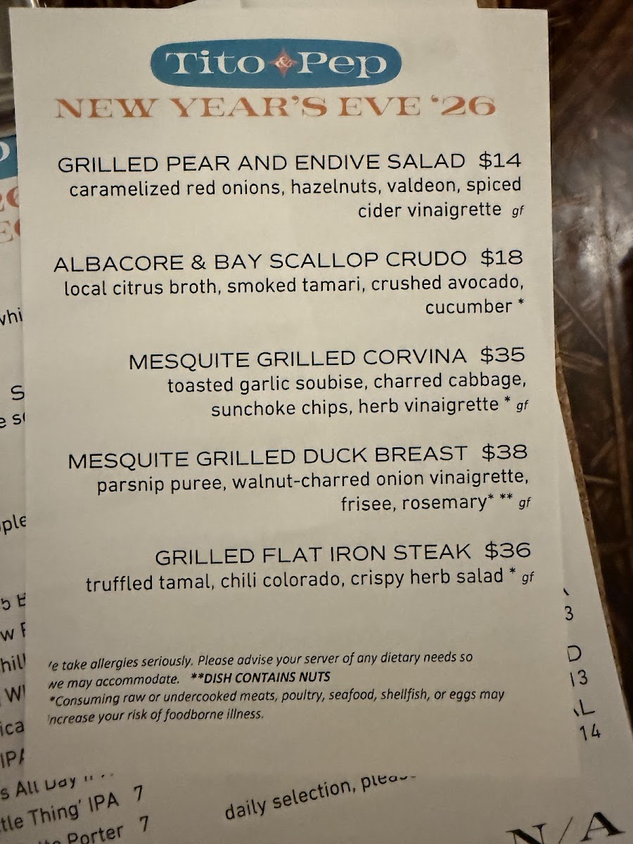 Tito and Pep Menu